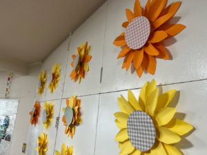 実は、梅雨の時期から夏の象徴である「ひまわり」も完成しており、リビングは満開のひまわりで華やいでいます。